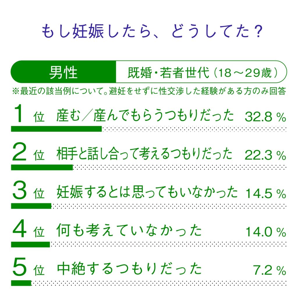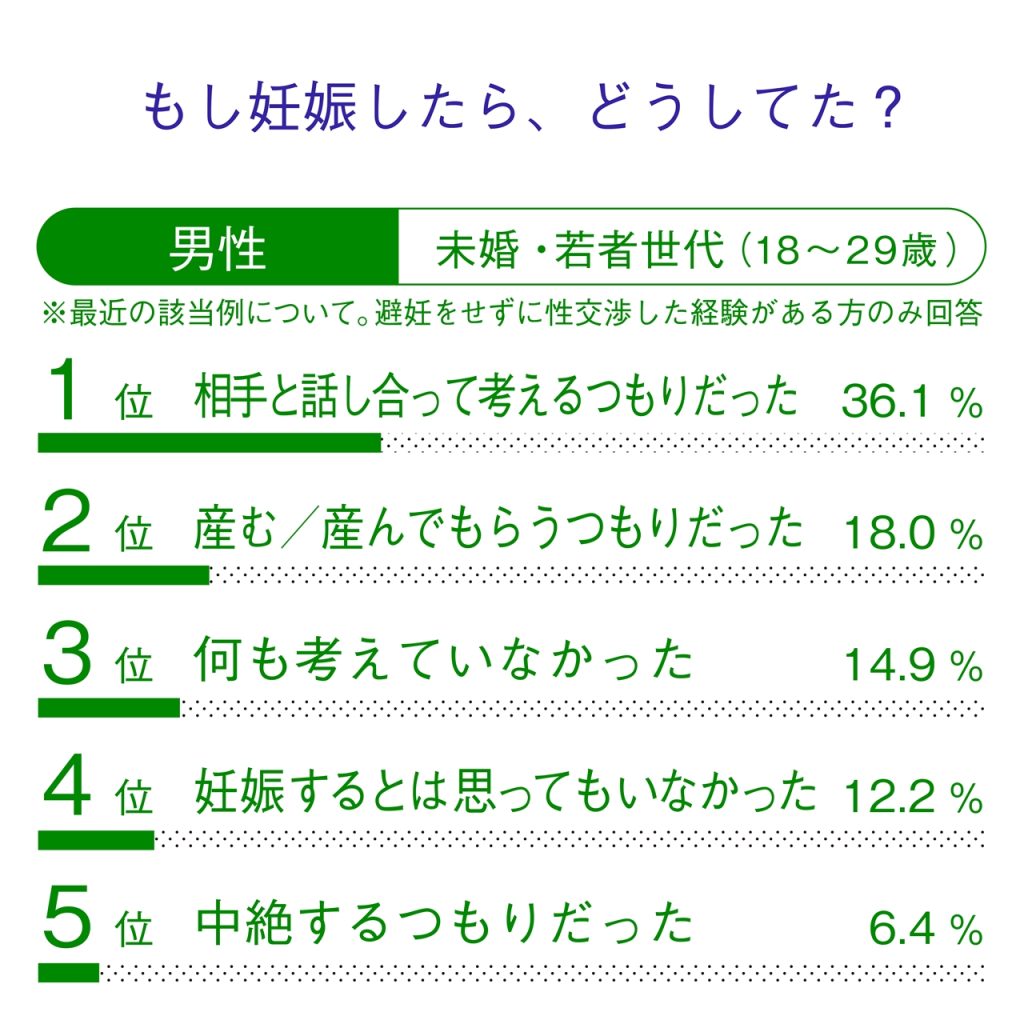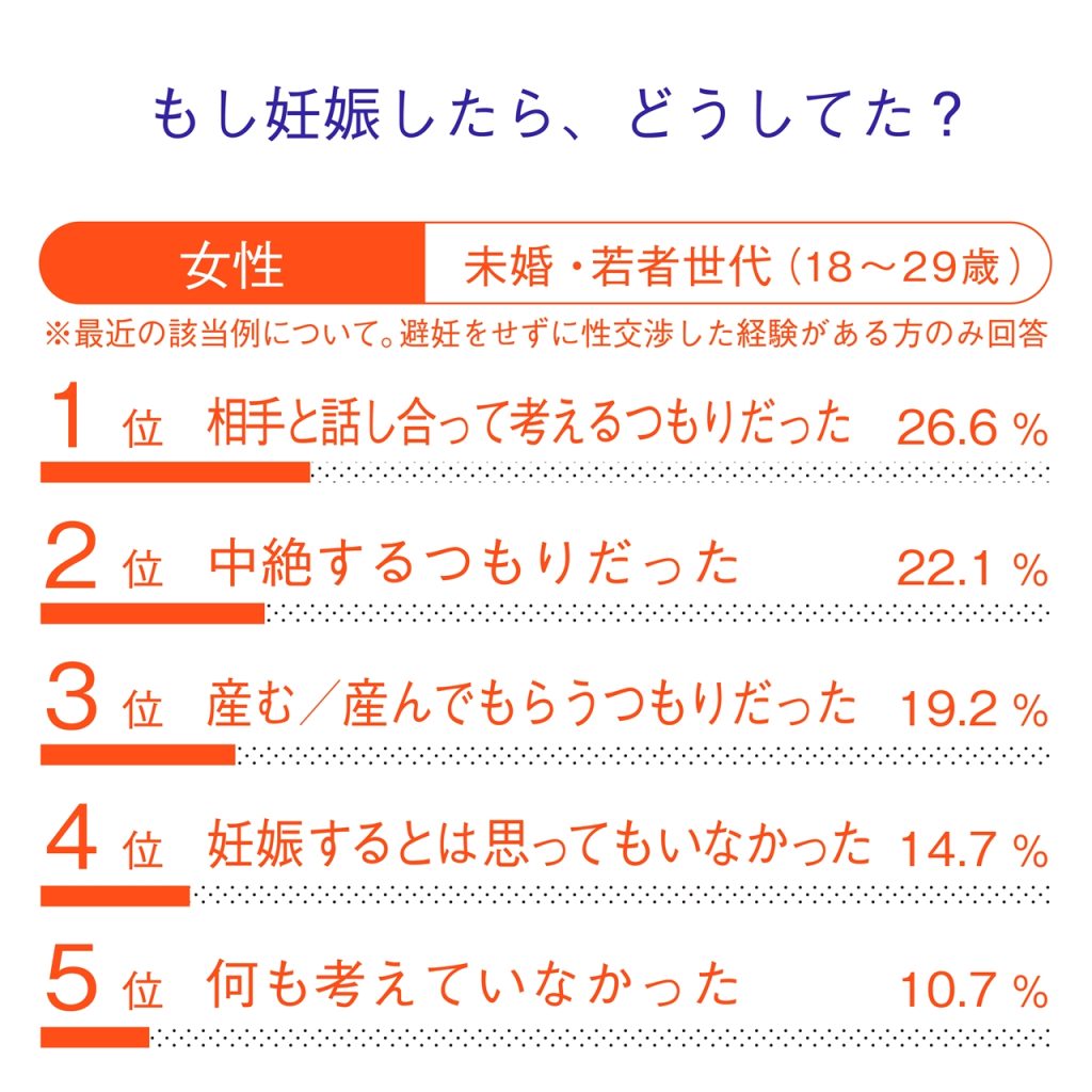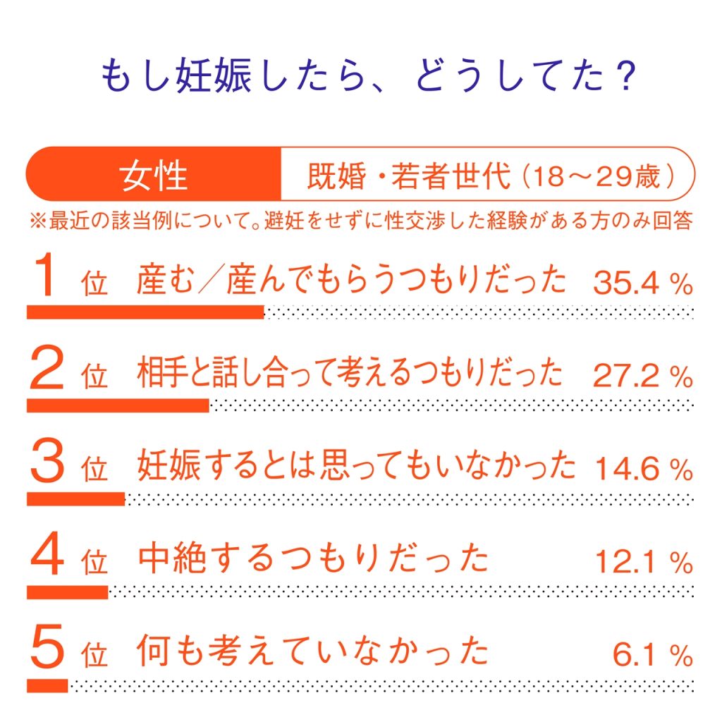 - 若者の2割、大人の4割が、妊娠を望まないセックスで「避妊しなかった経験がある」と回答。その理由は、若者では「避妊なしでも大丈夫だと思った」、「快感が損なわれる」が上位だった。