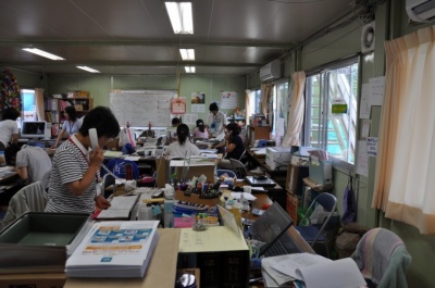 公的機関の施設が全壊した南三陸町役場は仮庁舎に移り、保健福祉の業務は町民の所在把握と家庭訪問活動に追われています。