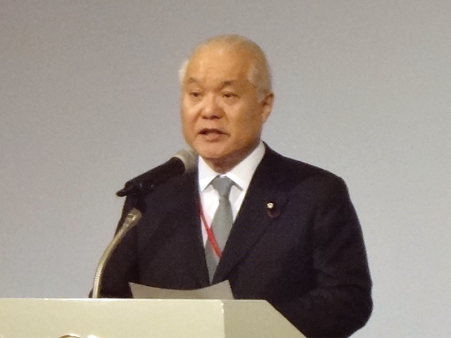 歓迎挨拶をする大島理森衆議院議長、国民に選ばれた国会議員の責任と役割が重要であると強調しました。