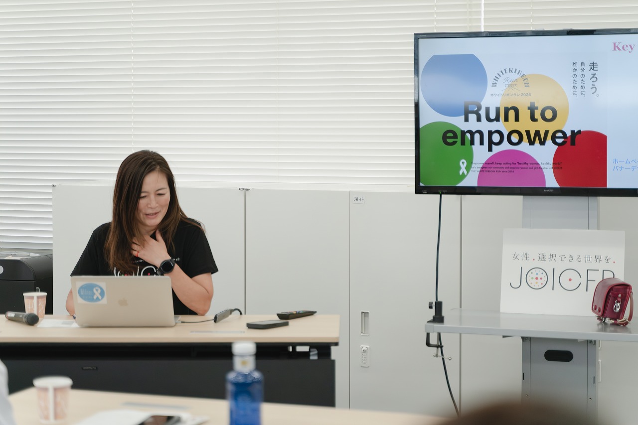 ジョイセフラウンジの後半では、ファンドレイジング推進担当の森田より、2025年の実績とともに、「ホワイトリボンラン2026」に向けた構想が初めて発表されました。