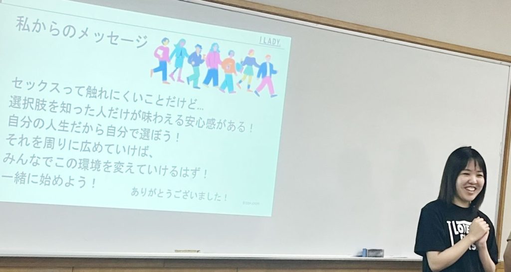 人前で話すことがあまりないため意外だと言われました。しかし学園祭などを通して、親や友人にSRHRを伝え、現在ではわかりやすい説明だねと言われるようになりました。