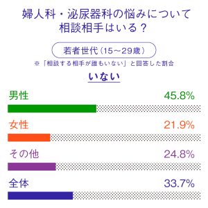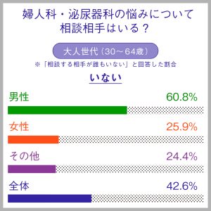 2025年の最新調査でも、体の悩み(婦人科・泌尿器科系の悩み)について「相談する相手が誰もいない」と答えた男性は51.9%。若い世代でも45.8%、大人世代では60.8%にのぼります。つまり、男性の半数以上が一人で抱え込んでいるのが現状です。