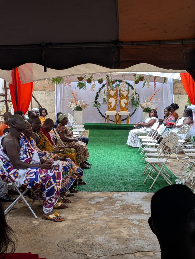 これはアフリカ結婚式あるあるですが、はじまるのは予定時間の2-3時間後です。日本のようにウェディングプランナーなるものはいないので、自分たちや家族で準備するのですが、当日までいろんな準備があるのでなかなか始まりません。笑