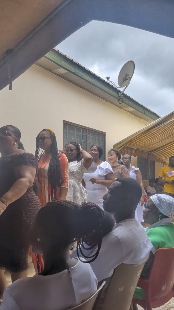 レセプションではDJの音楽に合わせてみんなでダンスパーティー!ひたすらみんな踊って、とても楽しい結婚式でした!1日がかりの結婚式ではガーナのいろんな文化をみることができました。改めてドリーンおめでとうー!!
