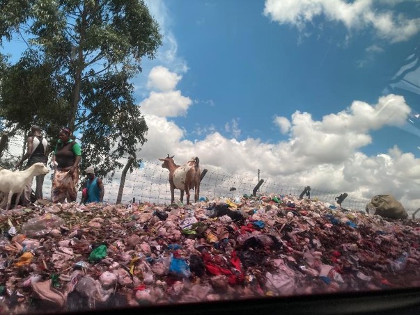 スラムの様子。ごみ収集のシステムがないため、ごみの山がいたるところにある。